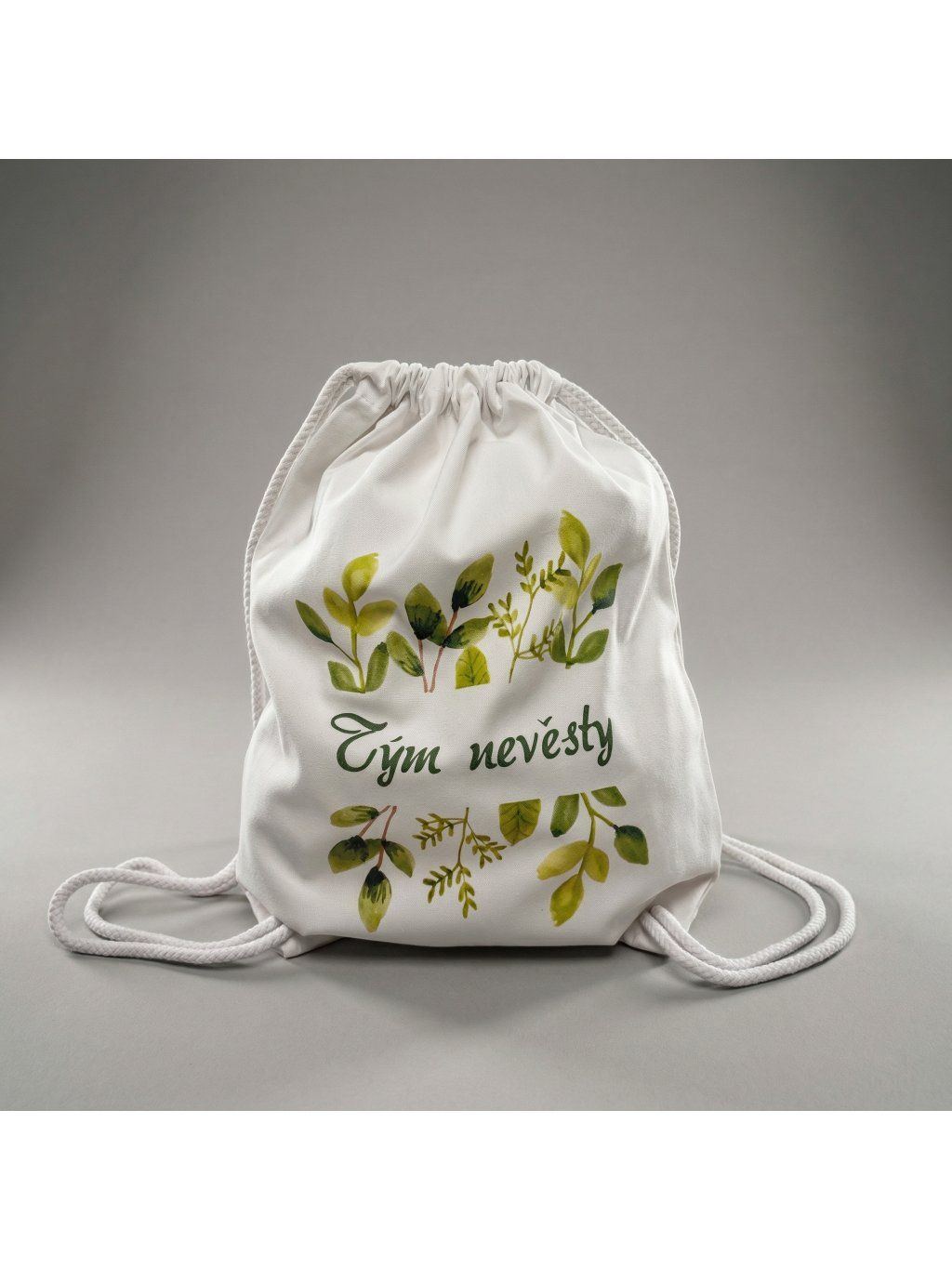 Bílý vak Tým nevěsty - zelené lístky