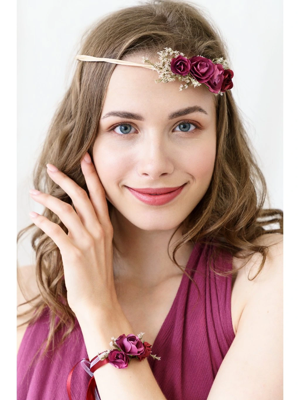 Tato čelenka s bordo květy je dokonalým doplňkem pro každou nevěstu, která chce zazářit na své rozlučce se svobodou. Sytá bordo barva dodá vašemu vzhledu sofistikovanost a bude vypadat úžasně na všech fotkách.