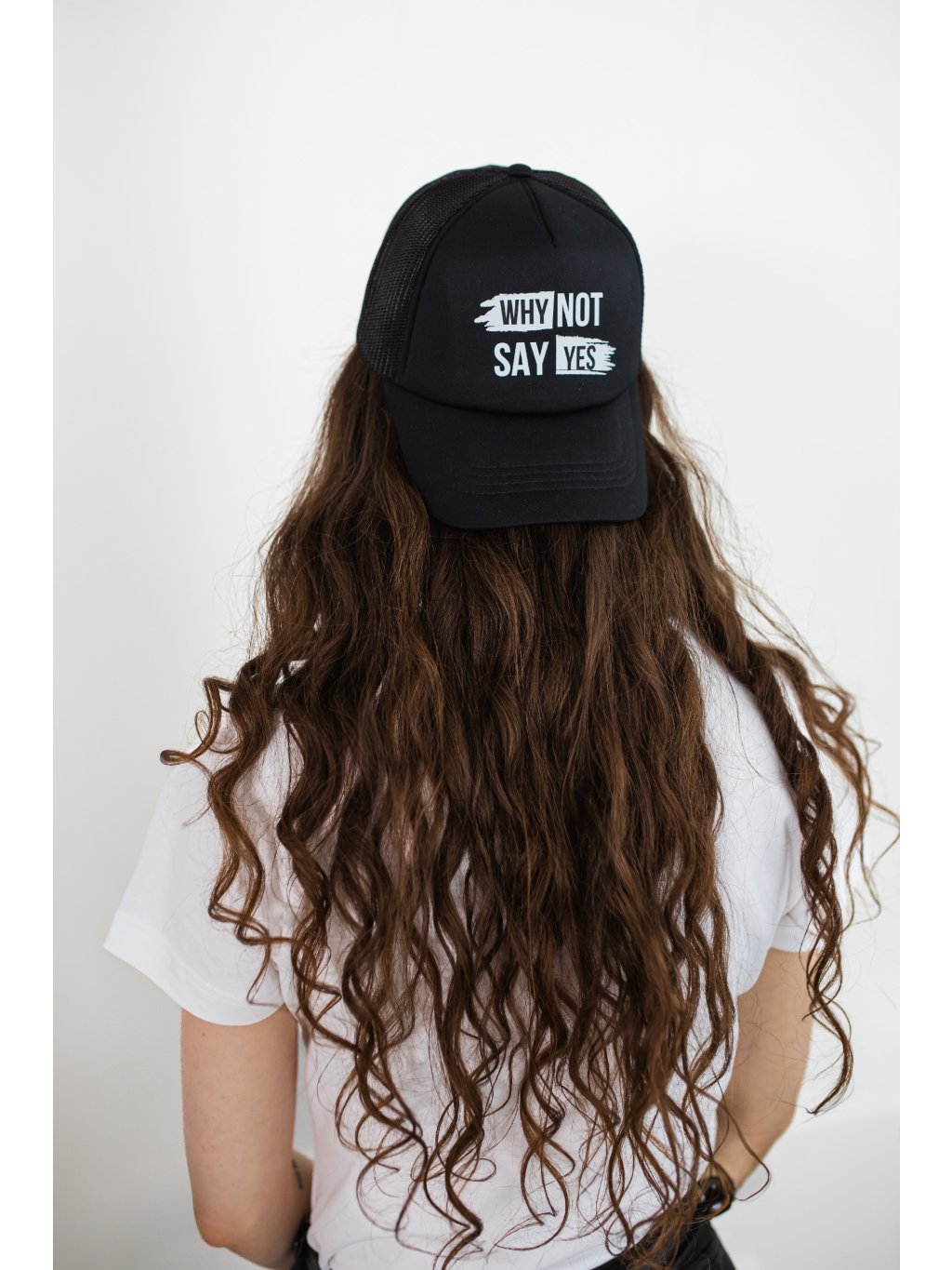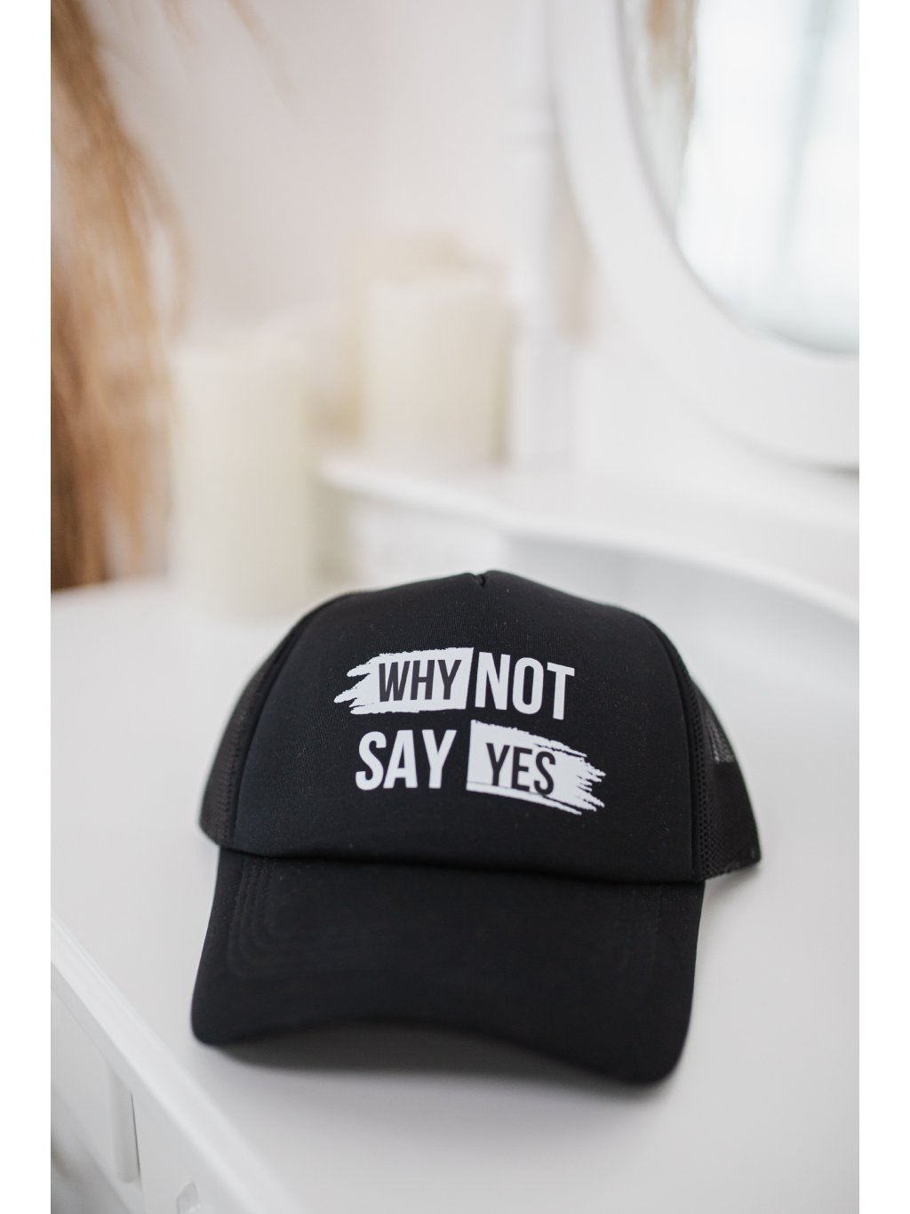 Barva kšiltovky: černá Barva potisku: bílá Typ potisku: Why not say yesKšiltovky mají vystužené čelo a zapínání na nastavitelnou plastovou sponu.