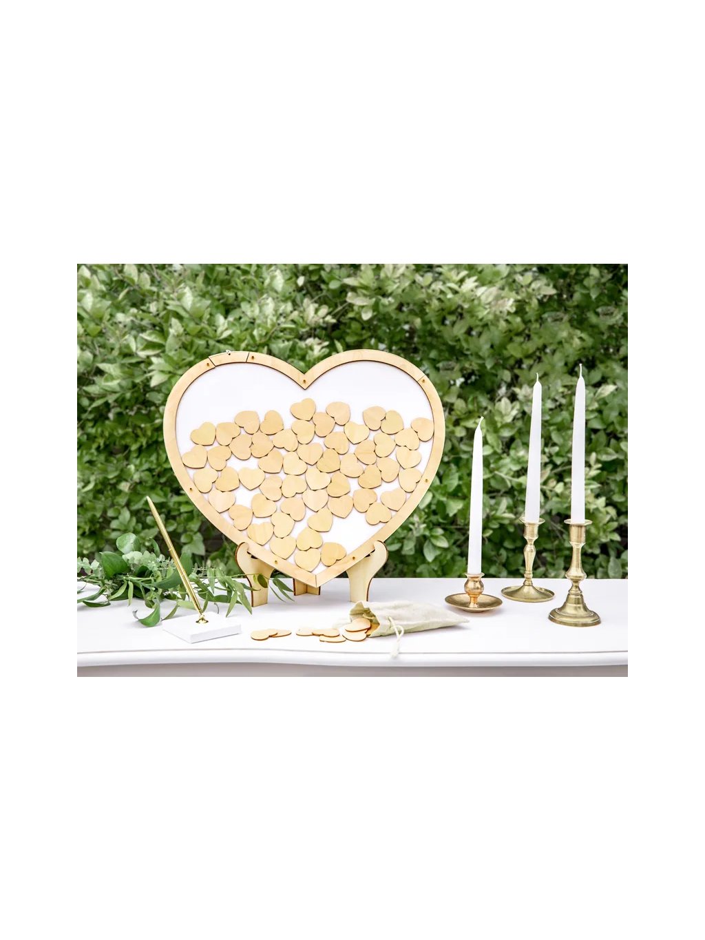 Každý host se může podepsat, napsat přání, krátký vzkaz nebo vytvořit malůvku na malé dřevěné srdíčko. To poté vhodí do velkého srdce. Po svatbě tak vznikne jedinečná památka plná emocí a osobních slov.