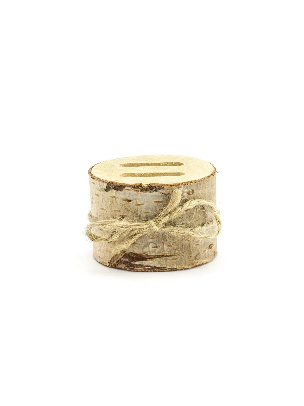 Dřevěný stojánek se perfektně hodí k dalším svatebním doplňkům a dekoracím, přírodním dekoracím nebo k dřevěné svatební knize hostů.