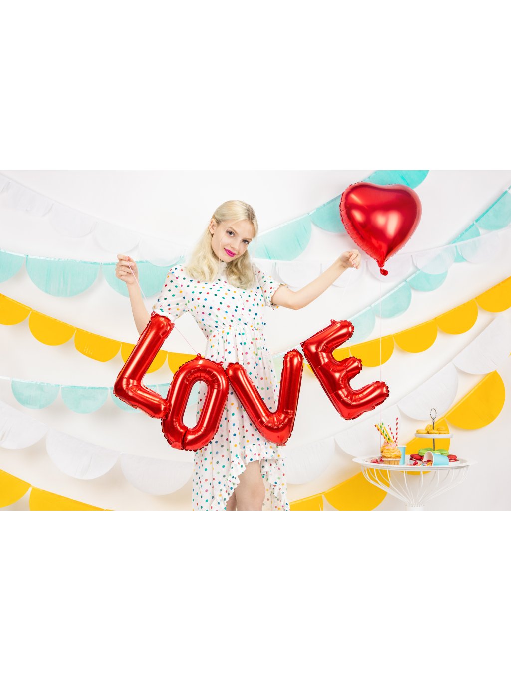 1× fóliový balónek s nápisem LOVE v červené barvě.