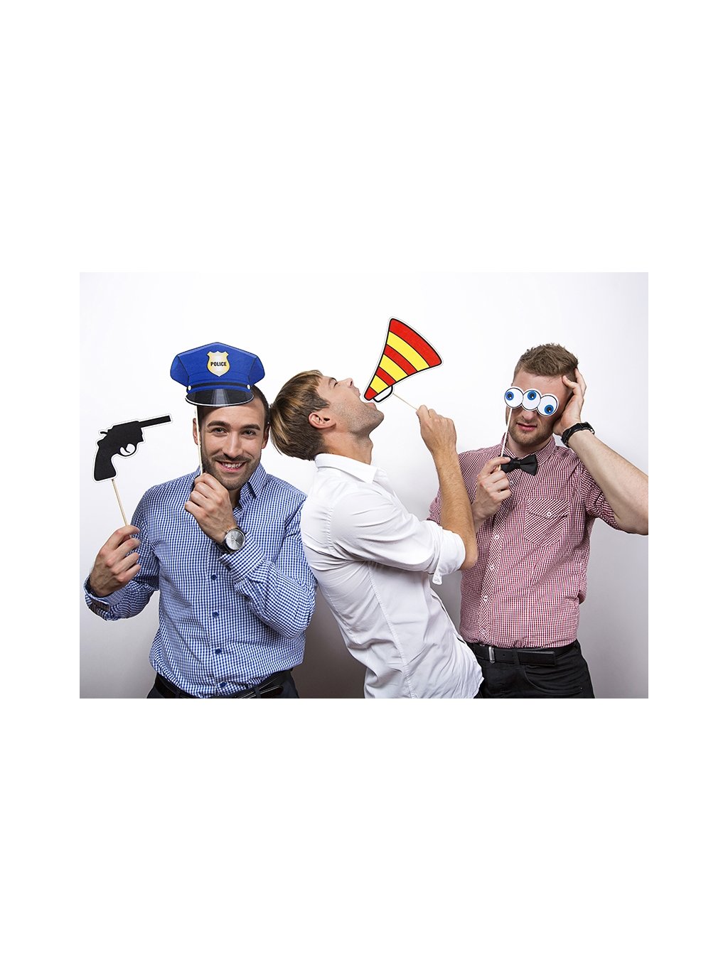 Rekvizity jsou lehké a snadno se drží, takže jsou vhodné i na delší focení. Jsou určené především jako fotodoplněk a zábavný prvek akce. Pokud plánujete větší skupinu, doporučujeme zvolit více sad, aby se dostalo na všechny členy týmu.