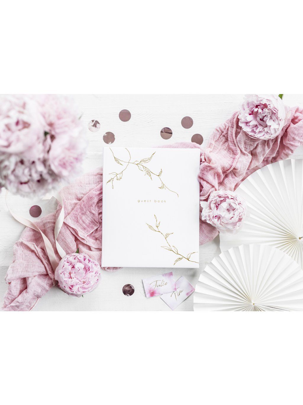 Bílo-zlatý design dodává knize luxusní vzhled, který se hodí do jakékoliv svatební výzdoby. Je to nejen praktický, ale i estetický doplněk, který se stane neocenitelnou památkou na váš velký den.