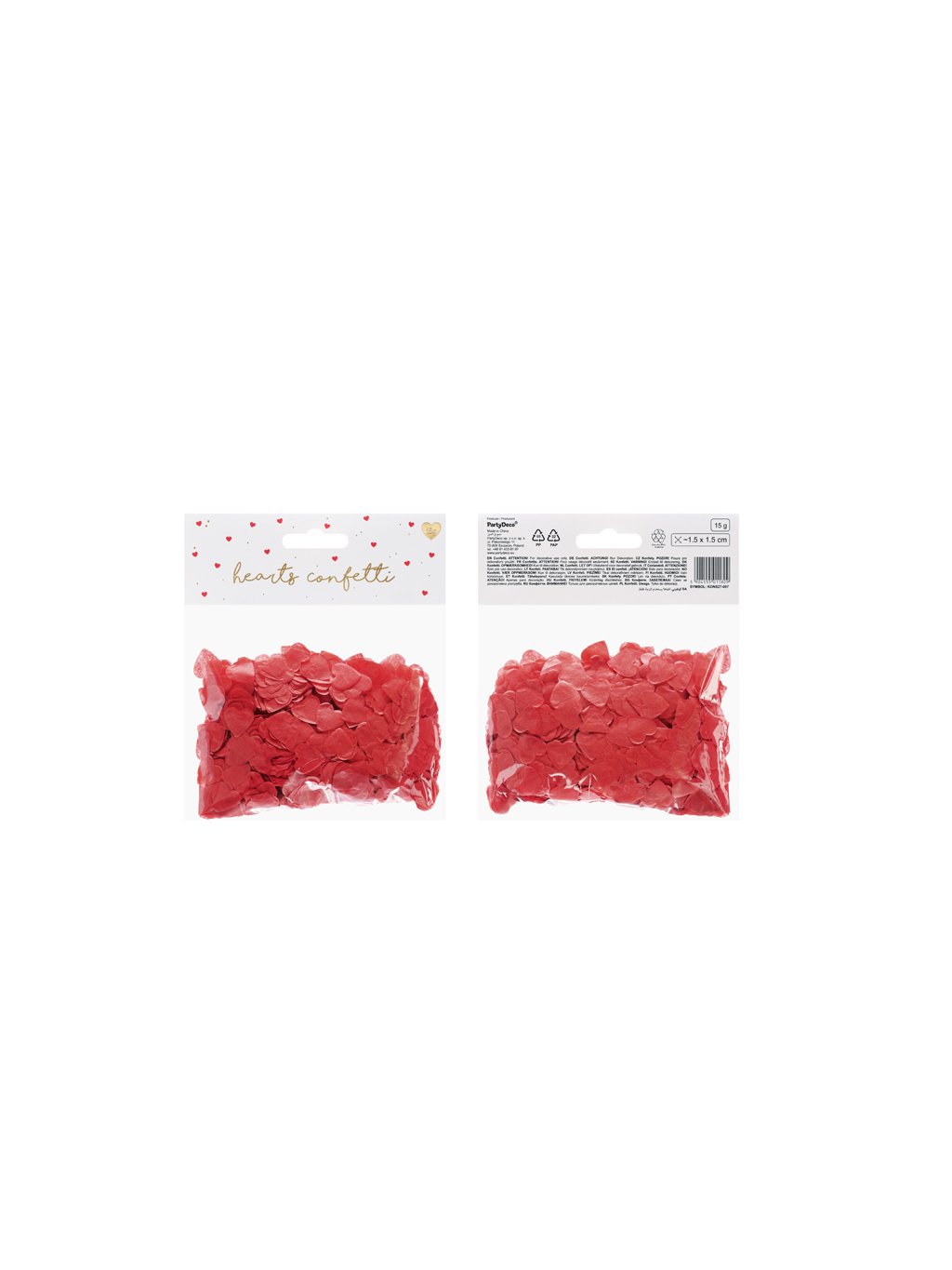Balení obsahuje cca 15 g papírových konfet ve tvaru srdce, barva červená, rozměr cca 1,6 × 1,6 cm.