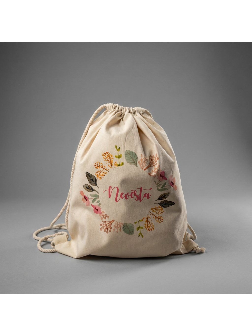 Natural vak Nevěsta s jemným věnečkem je perfektní volbou pro rozlučku se svobodou. Jeho květinový motiv dodá šmrnc a styl každé nevěstě. Díky plnobarevnému tisku si můžete být jisti, že váš vak nezůstane bez povšimnutí.