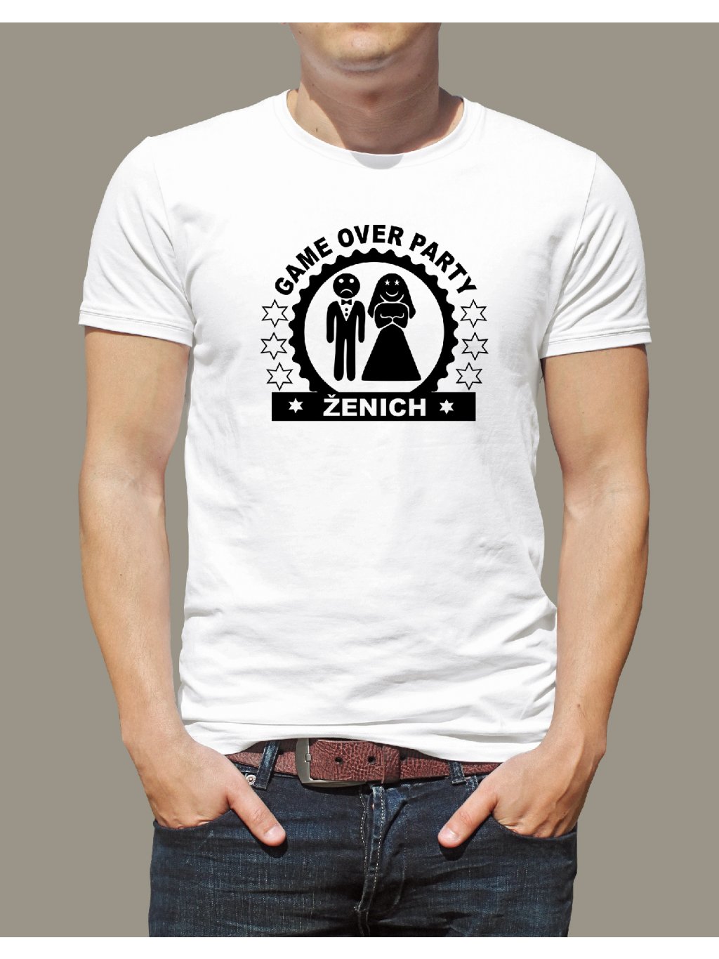 Barva trička: bílá Barva potisku: černá Typ potisku: Game over party - ženich