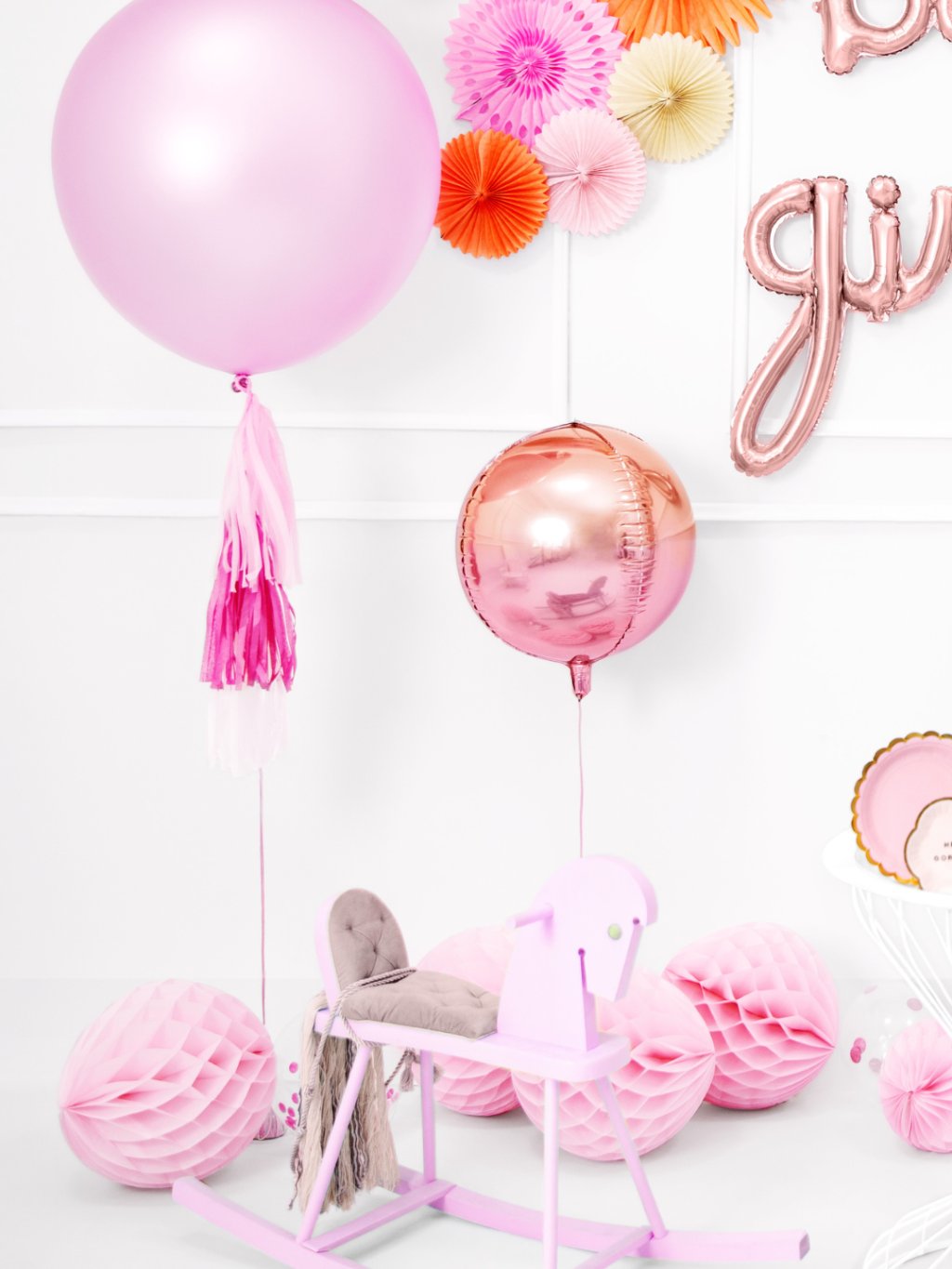 1× papírová honeycomb koule světle růžová o průměru 20 cm.