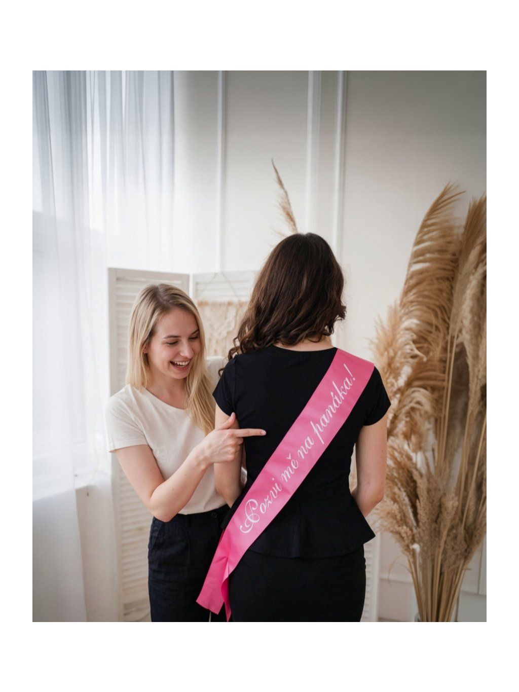 Tmavě růžová barva a výrazný bílý potisk přidávají šerpě elegantní vzhled, který zaujme na každé rozlučce se svobodou.Jaká je délka šerpy?