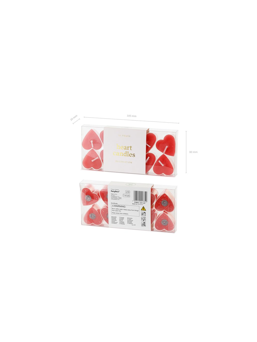 10× červená svíčka ve tvaru srdce o velikosti 4 cm.