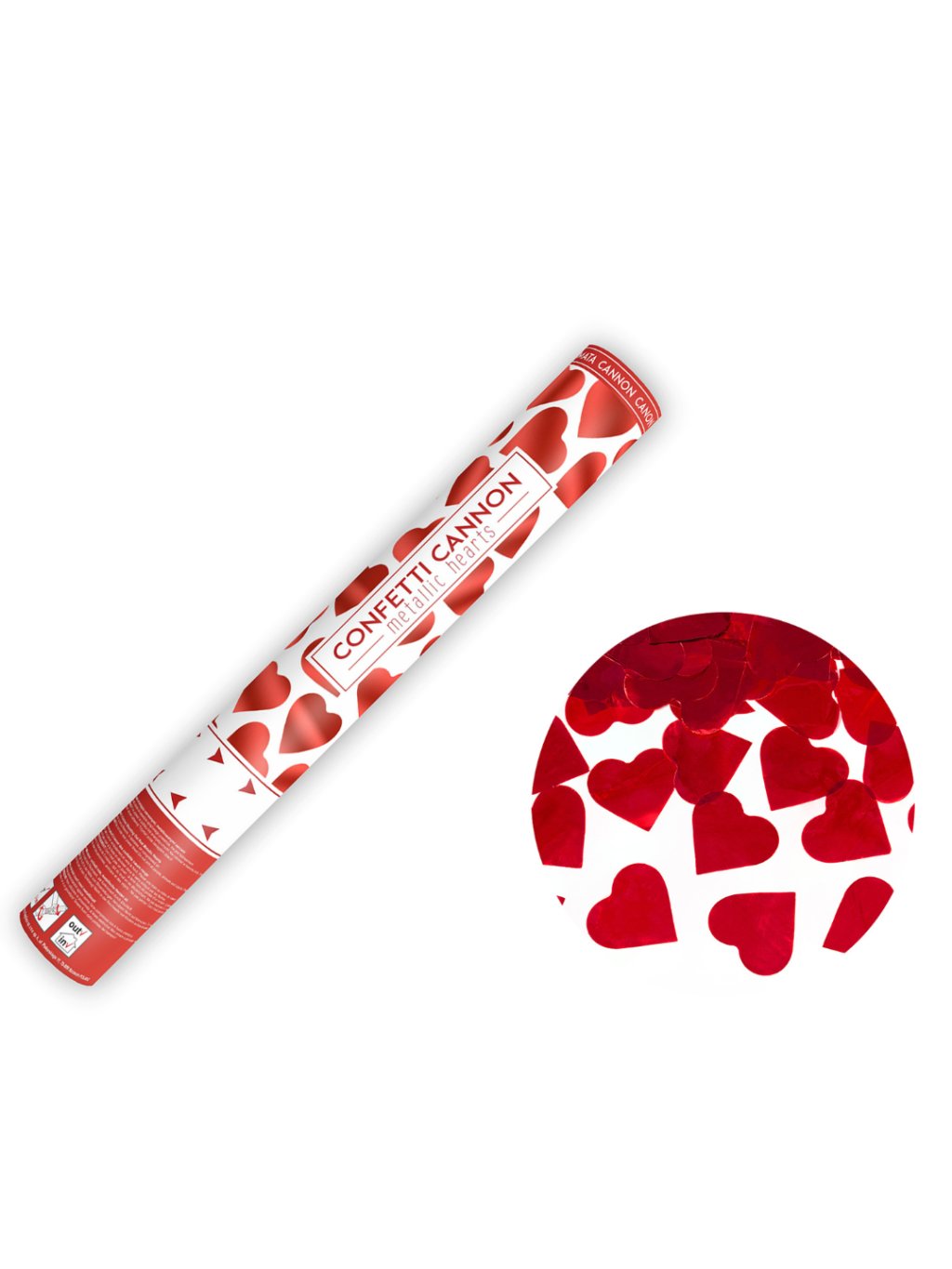 Typ: vystřelovací konfety. Délka: 40 cm. Motiv: červená srdce. Typ konfet: papírové. Počet kusů v balení: 1ks. Použití bez pyrotechniky.