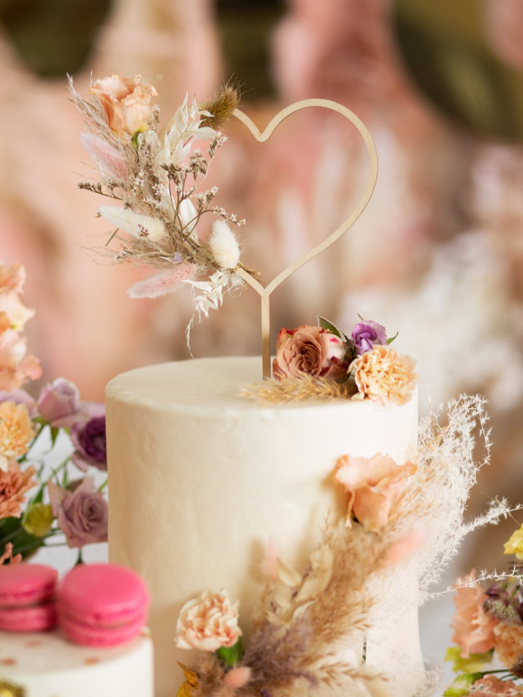 Dřevěný zápich na dort ve tvaru srdce je jednoduchou, ale působivou dekorací svatebního dortu. Přírodní materiál dodá sladkému baru jemný rustikální nádech a krásně zapadne do romantické i boho výzdoby.