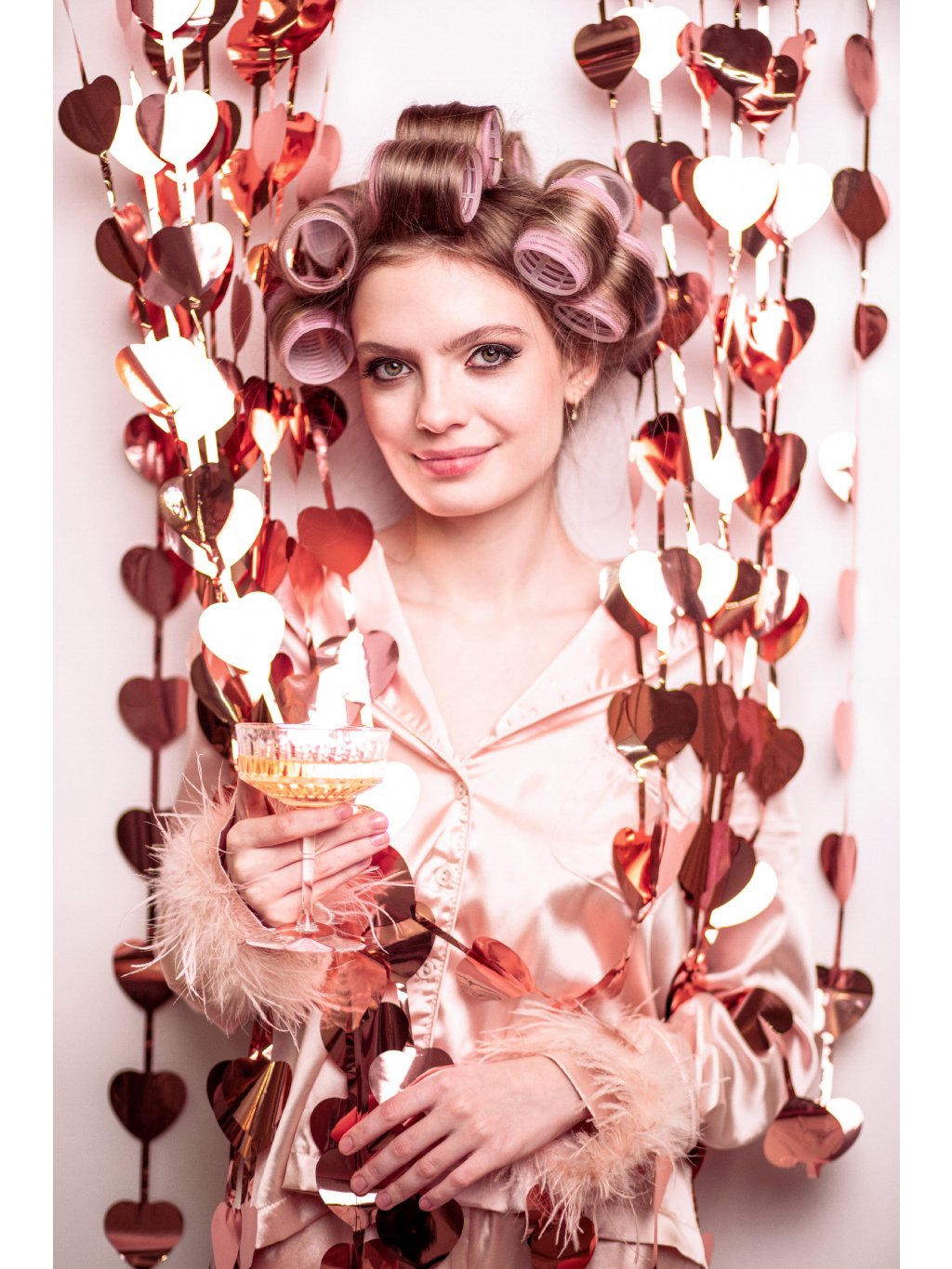 Chcete vytvořit romantickou atmosféru během pár minut? Tato závěsná fóliová dekorace s motivem srdcí v barvě růžového zlata okamžitě promění stěnu, dveře nebo fotokoutek v elegantní valentýnské pozadí.
